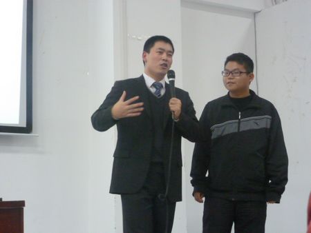 2012年11月22日晚7时15分,中国自考教育中心网副主任王有志老师在公司J1B演讲厅为机电系400多名员工举行了一场《老员工就业核心竞争力打造》的专题演讲。在演讲中,王老师向同学们讲述了很多找工作的经验,以及大学三年应如何进行规划,希望同学们不要浪费大学的宝贵时光。同时王老师还跟同学们开展互动、分享精彩的励志名言,使大家的激情一浪高过一浪,演讲厅里掌声不断,晚九时许演讲圆满结束。