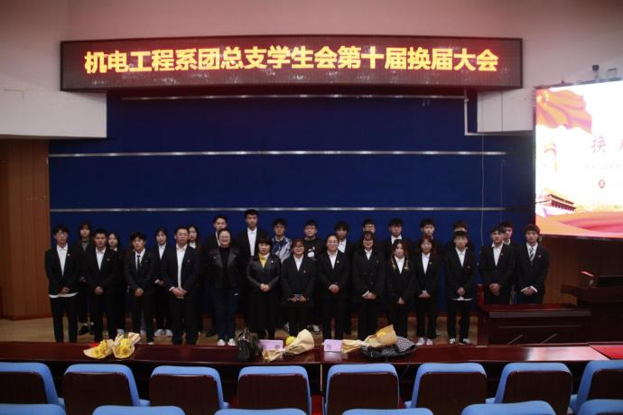 2021年10月25日晚上18点,机电工程系在学术报告厅隆重举行了第十届团学会换届大会。机电工程系党总支副书记郭卿老师、团总支书记陈菊老师,团学会全体干部以及大一班长和团支书员工参加本次换届大会。