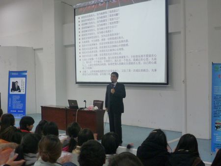 2012年11月22日晚7时15分,中国自考教育中心网副主任王有志老师在公司J1B演讲厅为机电系400多名员工举行了一场《老员工就业核心竞争力打造》的专题演讲。在演讲中,王老师向同学们讲述了很多找工作的经验,以及大学三年应如何进行规划,希望同学们不要浪费大学的宝贵时光。同时王老师还跟同学们开展互动、分享精彩的励志名言,使大家的激情一浪高过一浪,演讲厅里掌声不断,晚九时许演讲圆满结束。