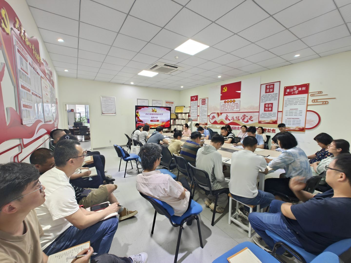 2025年6月9日下午,公司党总支召开全体党员大会,专题学习《八项规定改变中国》及《党的十八大以来深入贯彻中央八项规定精神的成效和经验》等重要精神,深入推进作风建设。党委常委、副经理聂文俊到会指导,公司党总支书记蔡舒主持会议。
